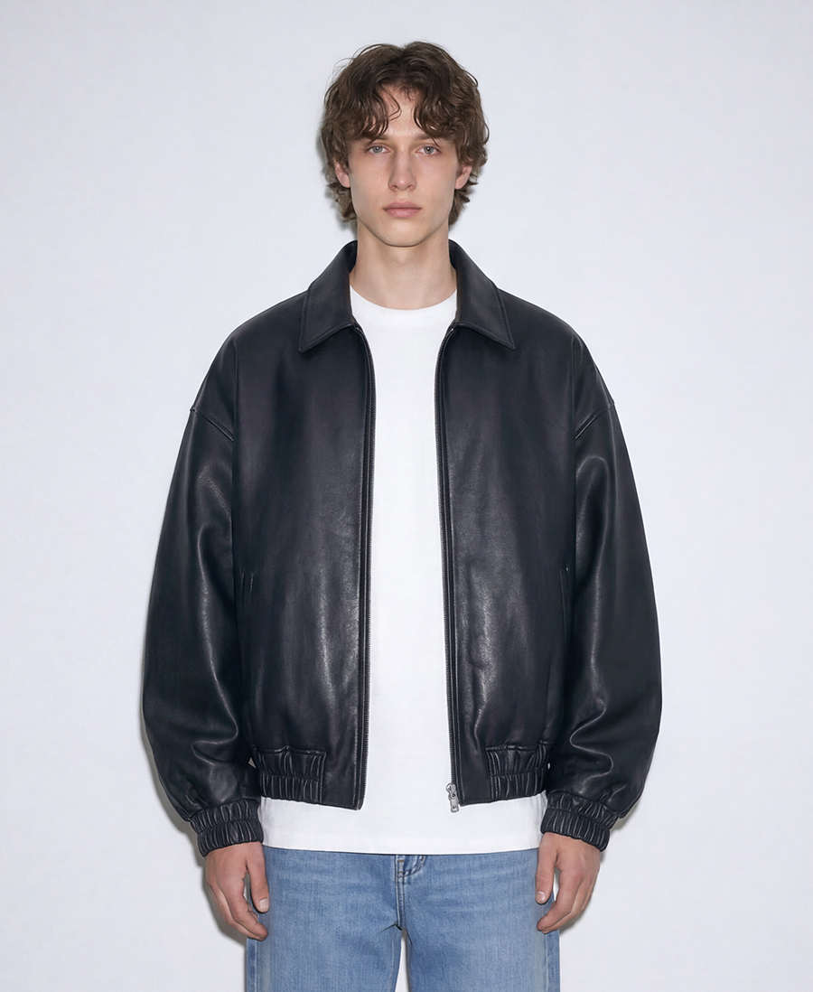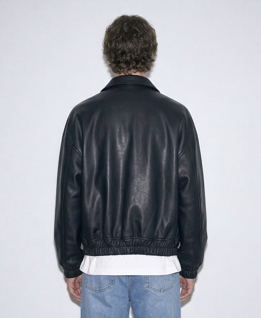 Overfit Vegan Leather Drop-Shoulder Jumper [Black]