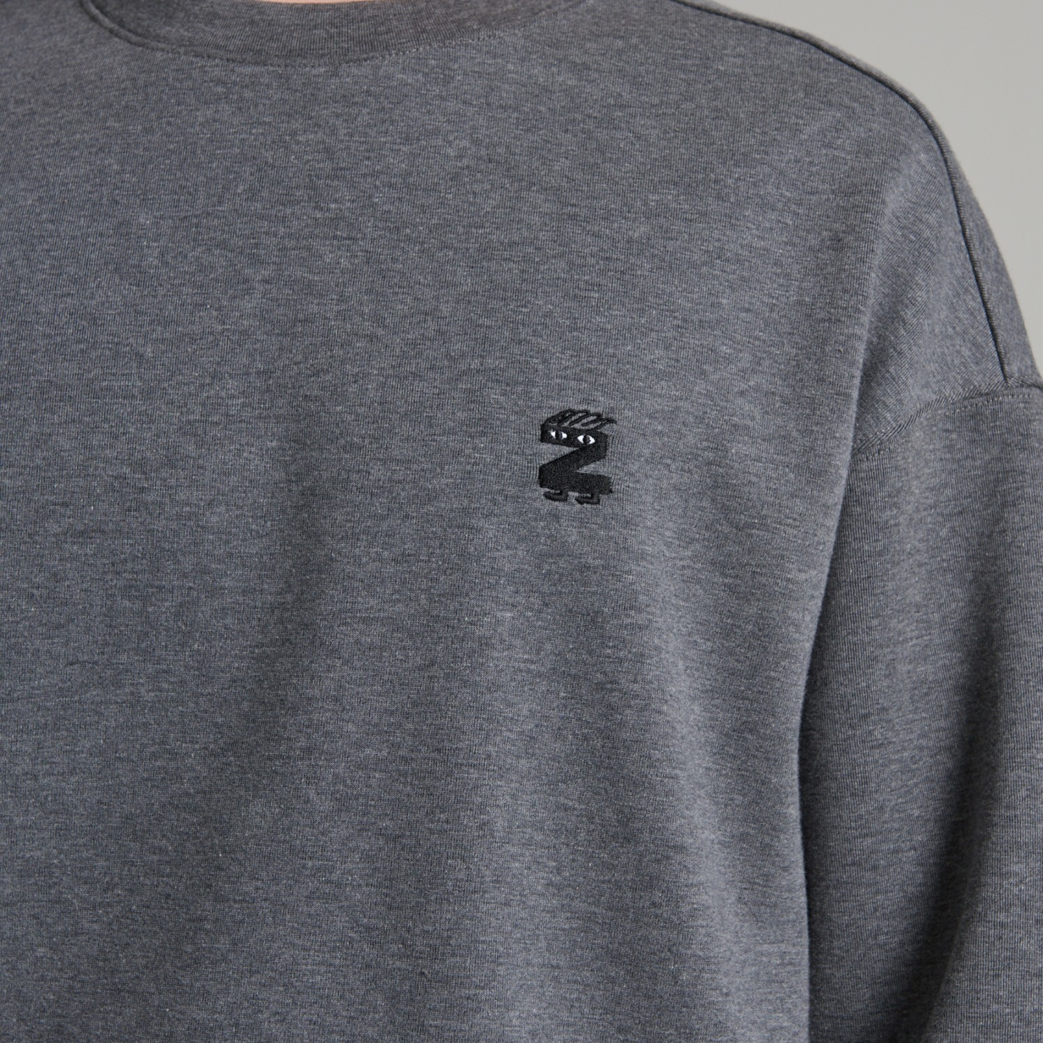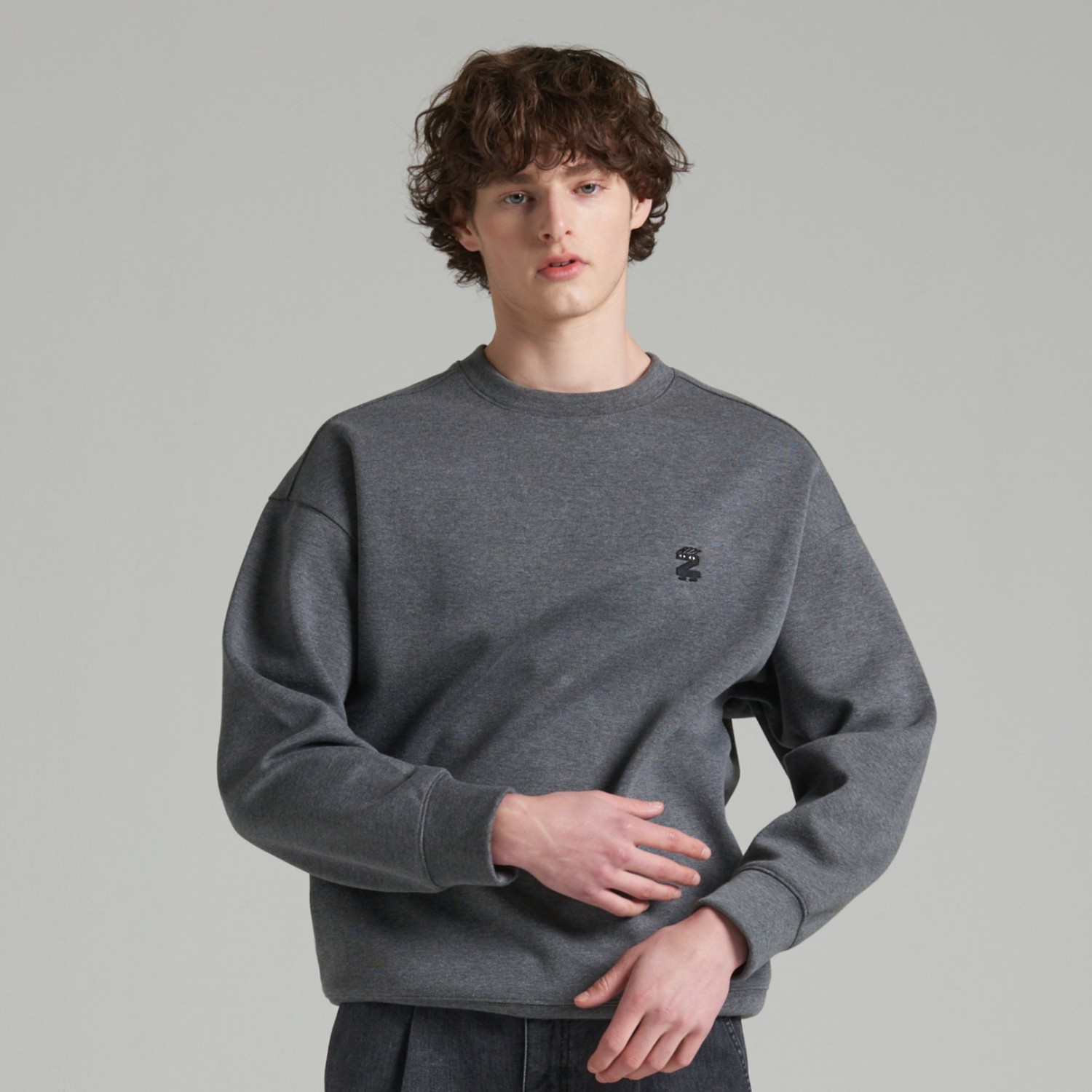 ZNOTHER 시그니처 Z캐릭터 자수가 있는  남녀 누구나 데일리하게 착용 가능한 세미 오버핏 스웻셔츠입니다