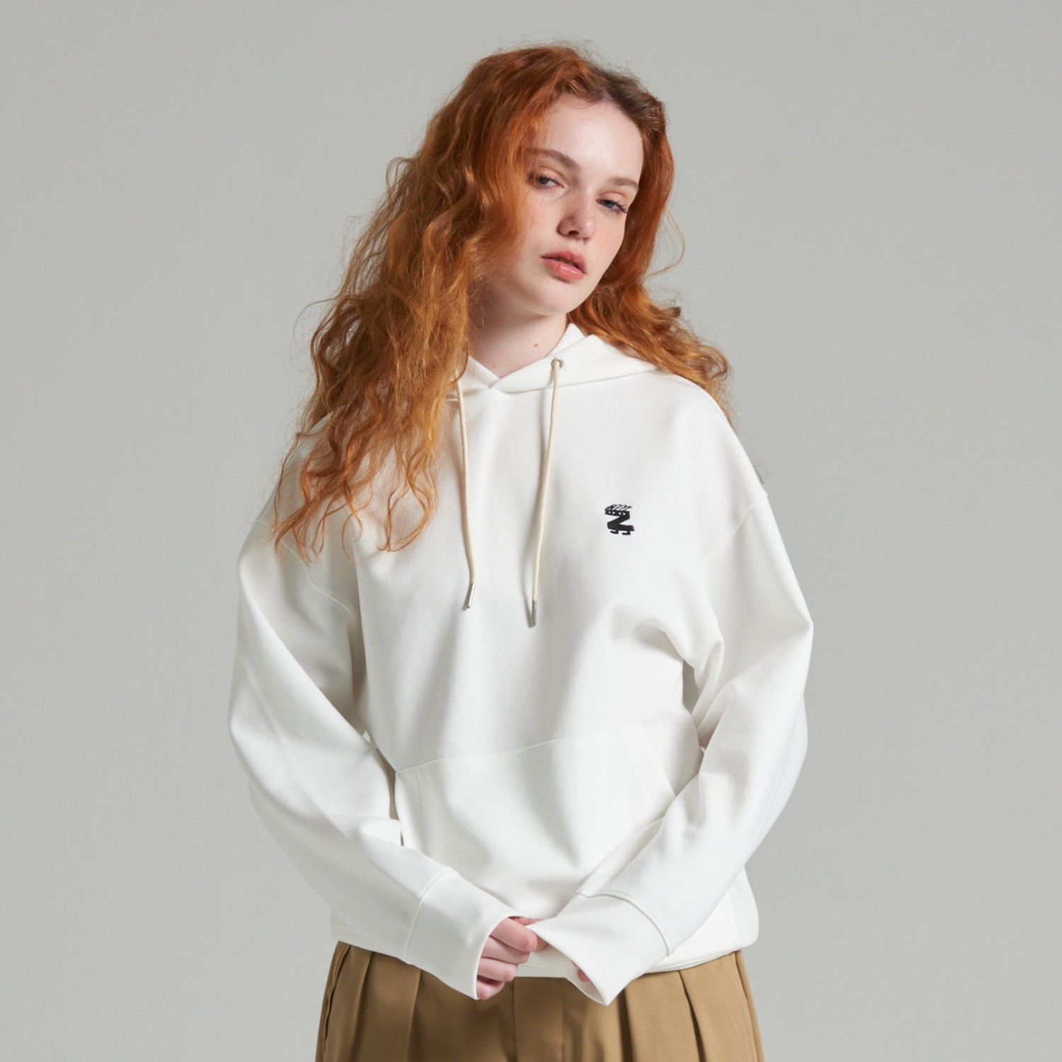 ZNOTHER 시그니처 Z캐릭터 자수가 있는  남녀 누구나 데일리하게 착용 가능한 세미 오버핏 후디입니다.