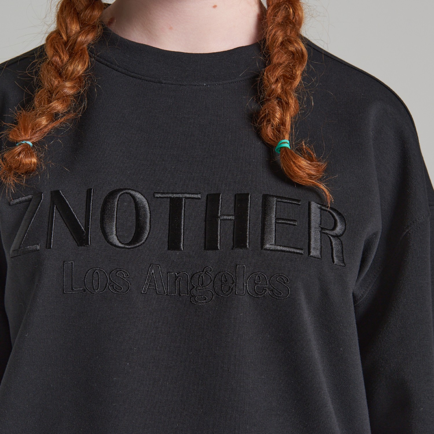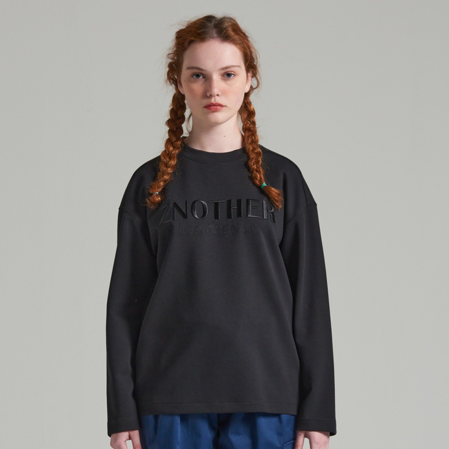 ZNOTHER 시그니처 엠보 레터링 자수가 있는 남녀 누구나 데일리하게 착용 가능한 세미 오버핏 티셔츠 입니다.