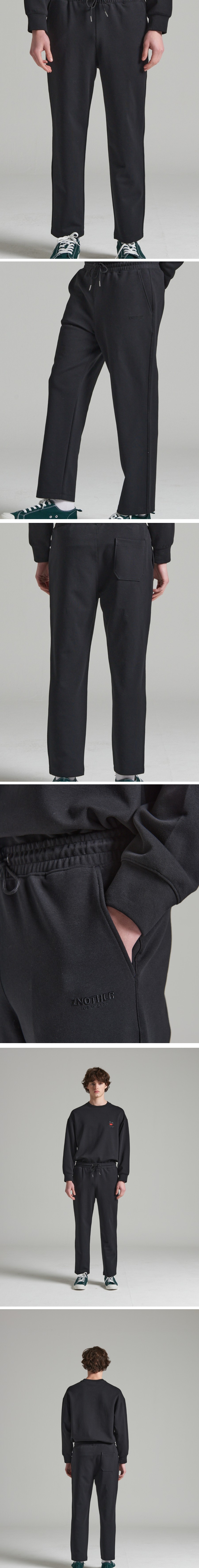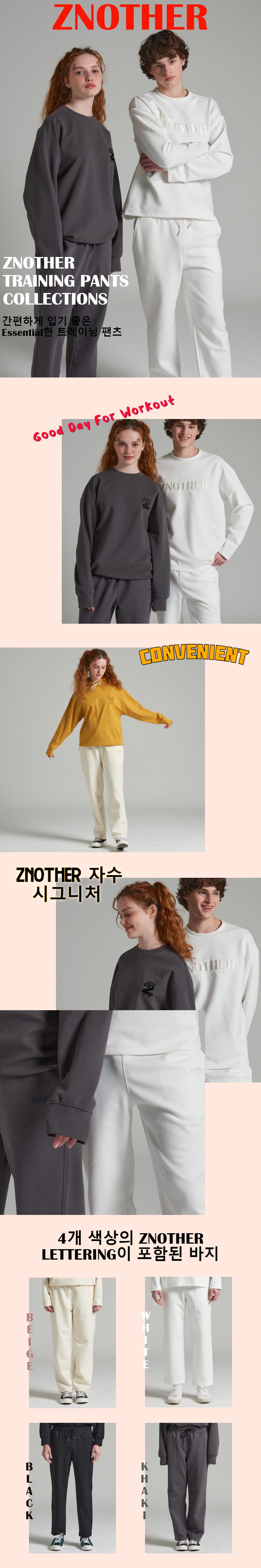 ZNOTHER의 시그니처 엠보 레터링 자수가 있는 남녀 누구나 데일리하게 착용 가능한 스웨트팬츠입니다.