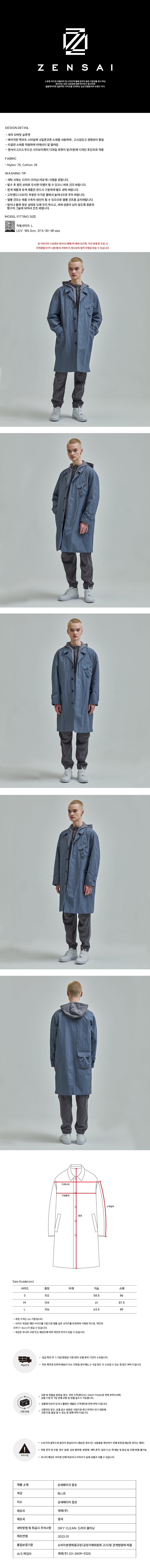 베이직한 맥코트 스타일에 고시감있는 코튼 켄버스소재를 사용하여 실루엣선이 잘 잡히고, 라글란 소매를 적용하여 어깨선이 잘 떨어집니다.