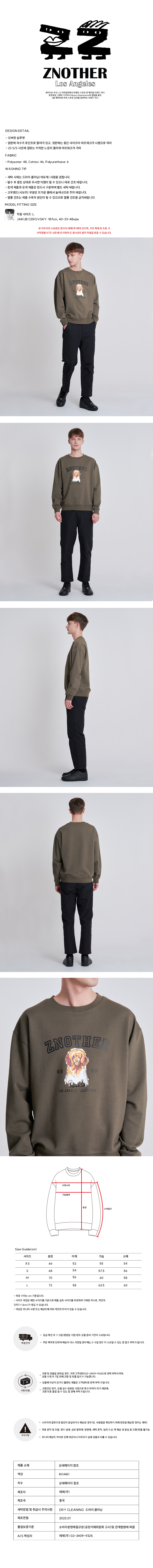 푸들 맨투맨 카키 (ZNE1TS104KH)