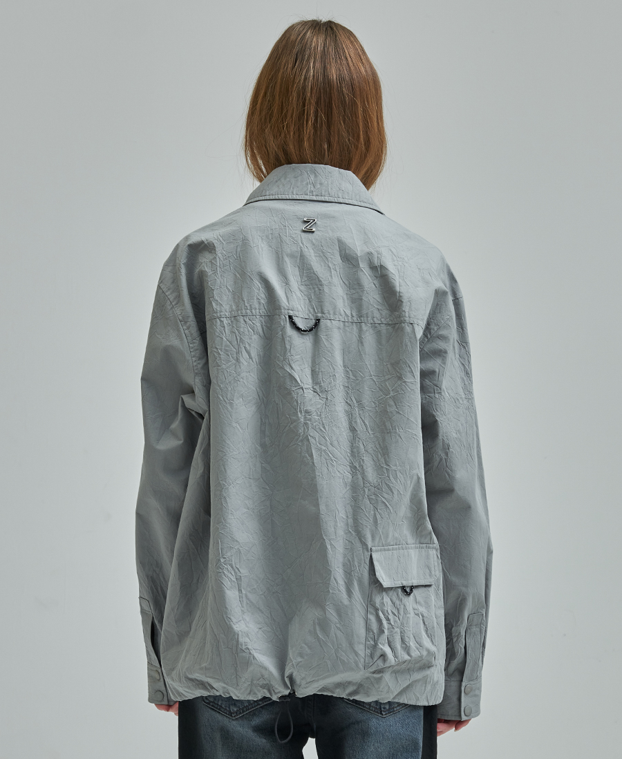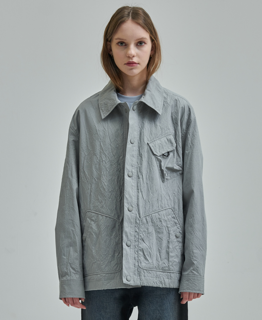 크링클(주름)이 가공이 된 소재를 사용하여 디자인 포인트로 적용된 코치형 점퍼입니다.