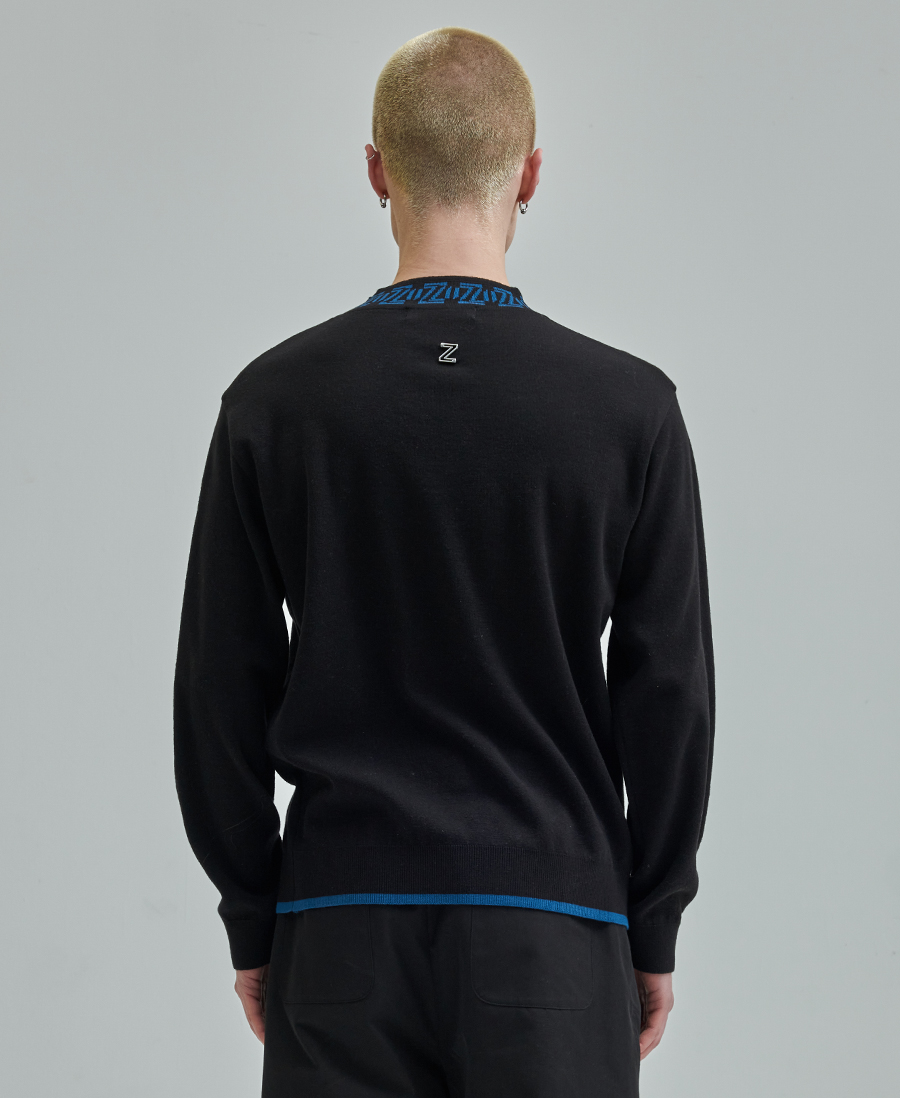 12게이지의 중량으로 간절기 기간 아우터안에 또는 단독으로 비교적 긴기간 착용이 가능한 무크넥 풀오버 니트입니다. 솔리드한 몸판 컬러에 배색컬러로 젠사이 쟈가드로고가 무크넥안에 포인트로 적용되어, 엣지있는 무드를 연출합니다.