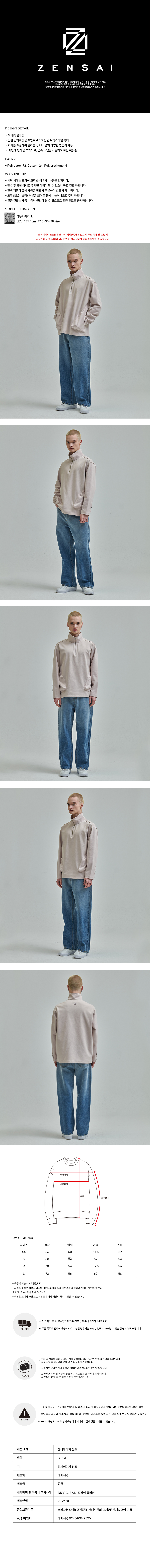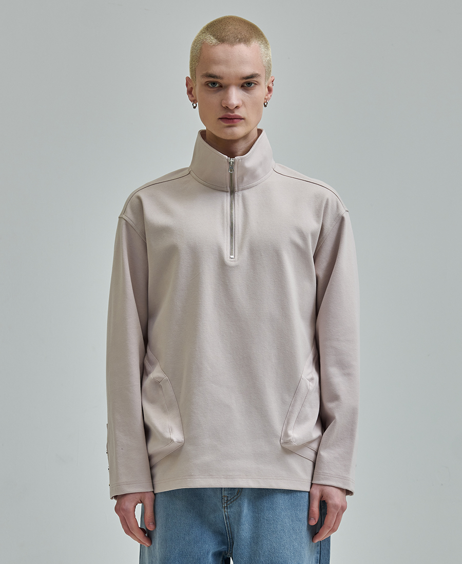 하프 집업 티셔츠 베이지 (ZAD1TS107BE)