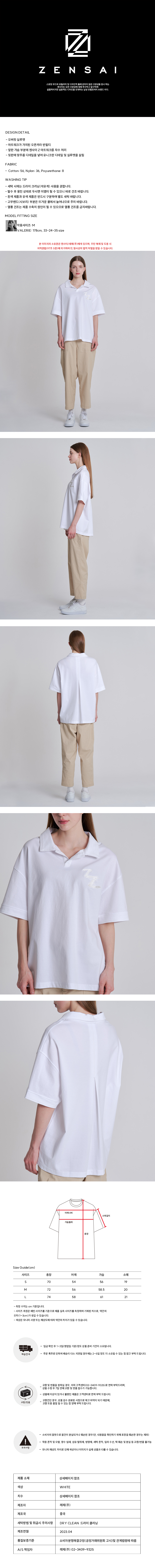 아트워크가 가미된 오픈카라 오버핏 반필티 이다. 앞판 가슴 부분에 젠사이 Z 아트워크를 자수 처리 하였으며, 뒷판에 맞주름 디테일을 넣어 유니크한 디테일 및 실루엣을 살렸다.