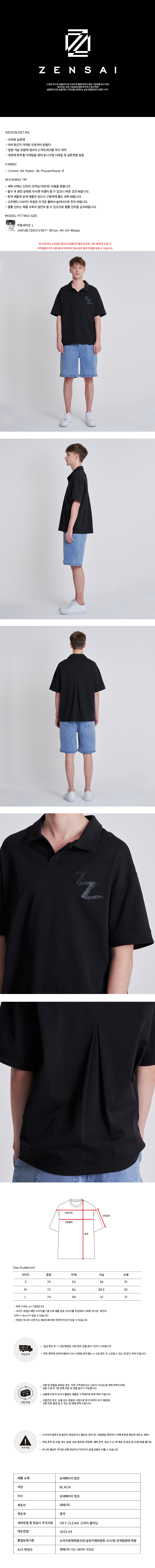 아트워크가 가미된 오픈카라 오버핏 반필티 이다. 앞판 가슴 부분에 젠사이 Z 아트워크를 자수 처리 하였으며, 뒷판에 맞주름 디테일을 넣어 유니크한 디테일 및 실루엣을 살렸다.